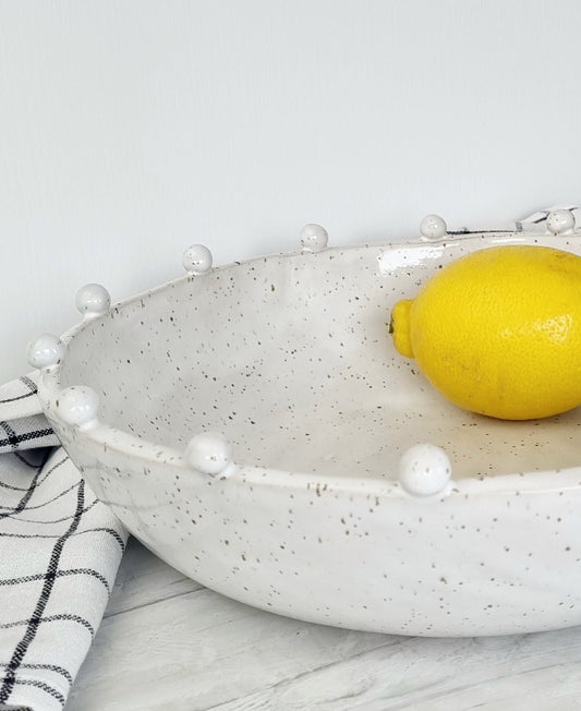 White ceramic bowl, speckled Centerpiece Bowl with small balls on the rim