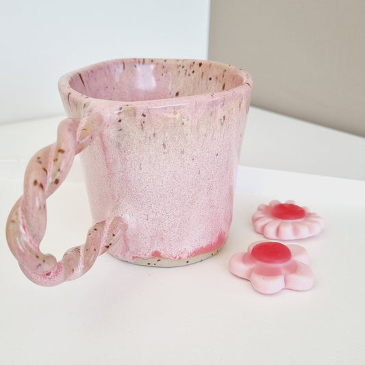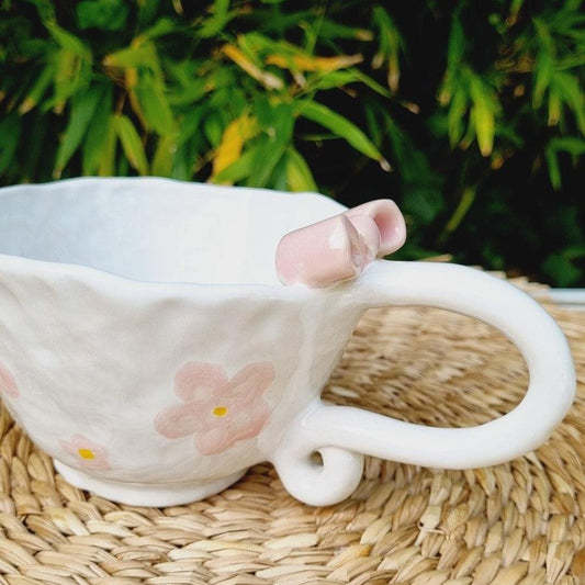 Girly Pink Ceramic Cup, Flower Shape Handle