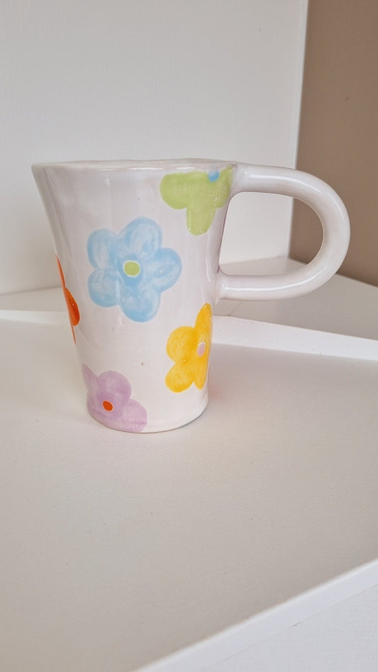 Large handmade mug with colorful flowers, modern mug with a touch of flower power, handmade gift.