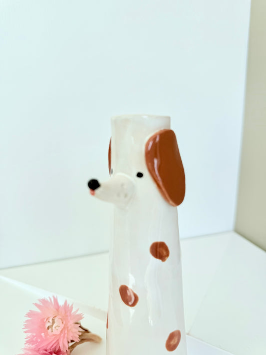 Cute Dog shaped skinny vase, handmade and hand painted ceramic doggy vase