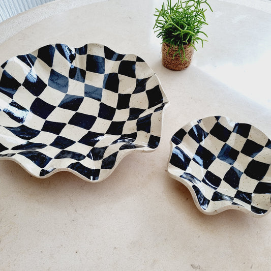 Schwarze karierte handbemalte Rüschenschale, eklektischer Stil