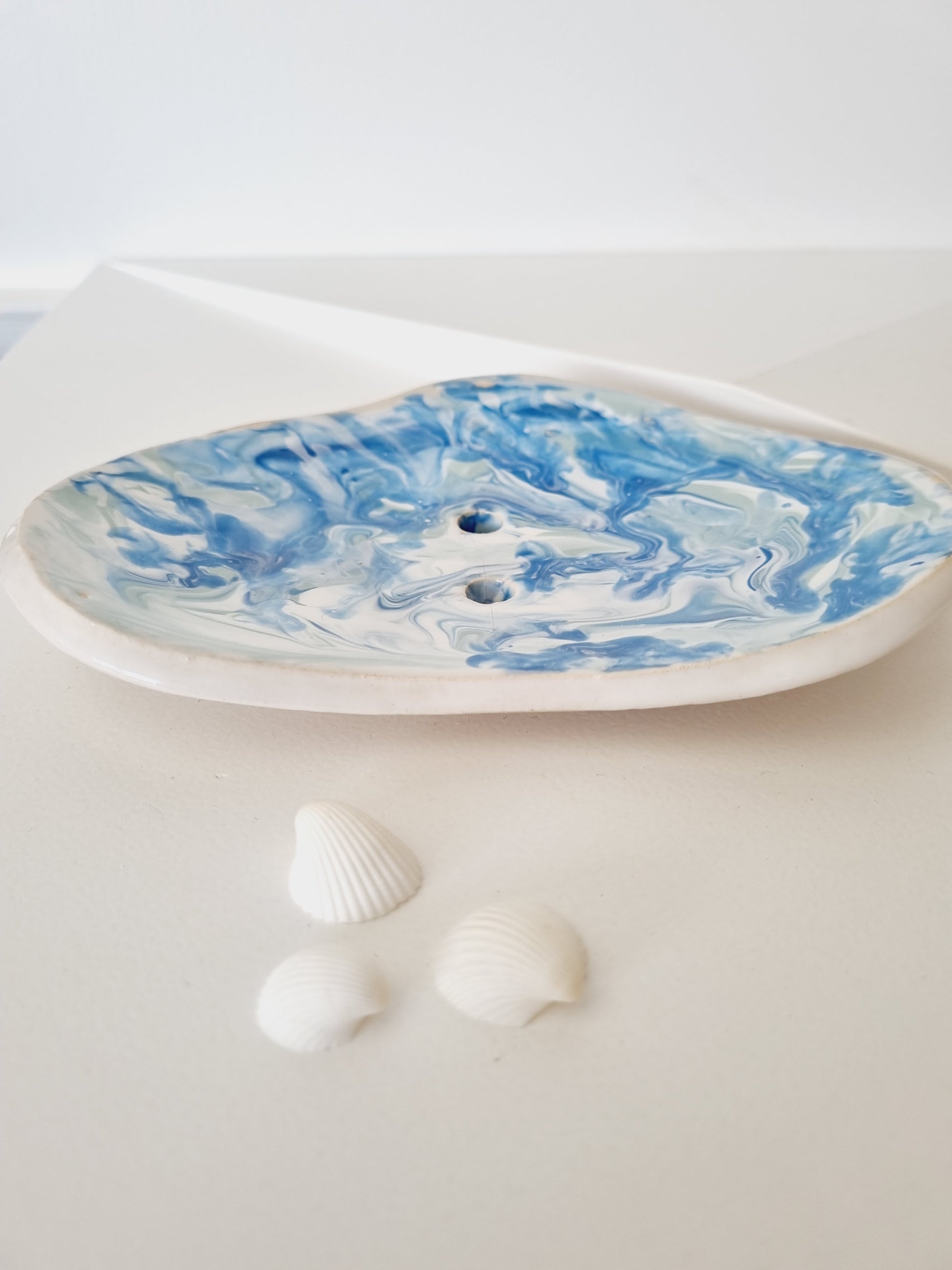 Un magnifique porte-savon en céramique bleu océan turquoise, peint à la main.