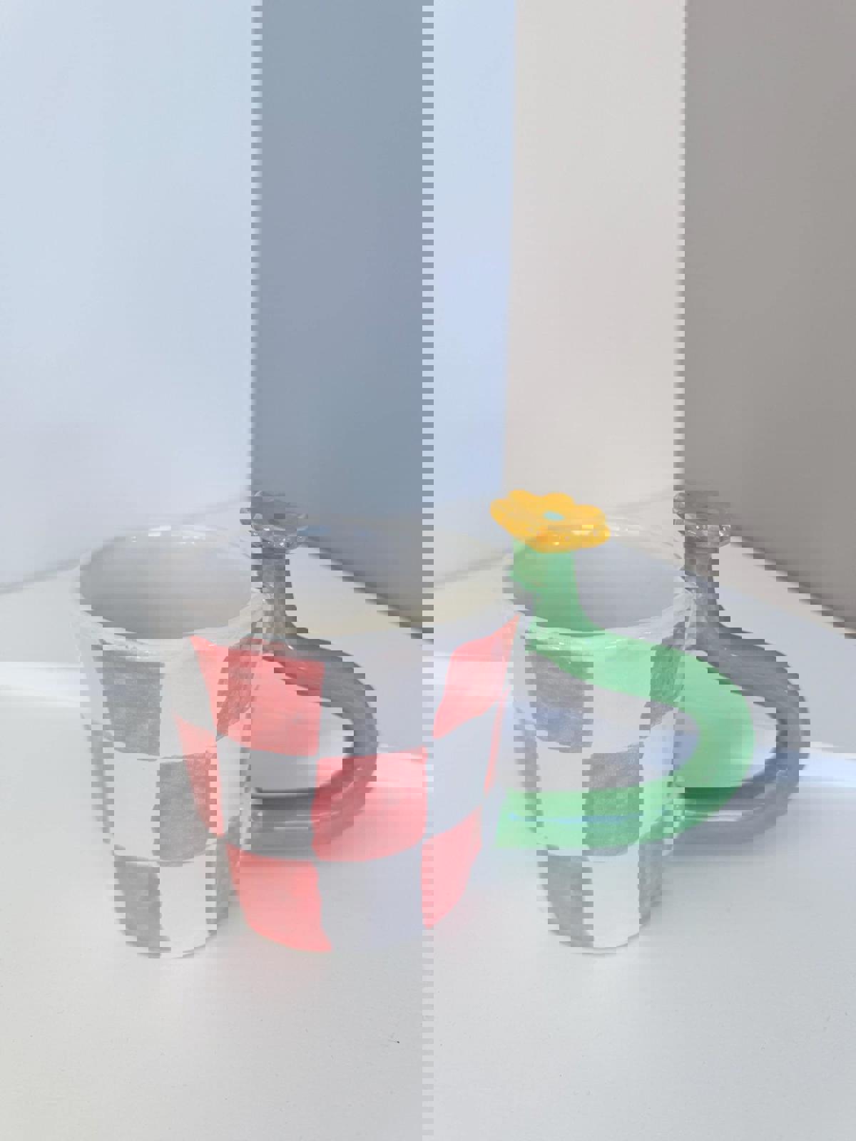 Mug with bold handle unique handmade checkers mug handpainted ,