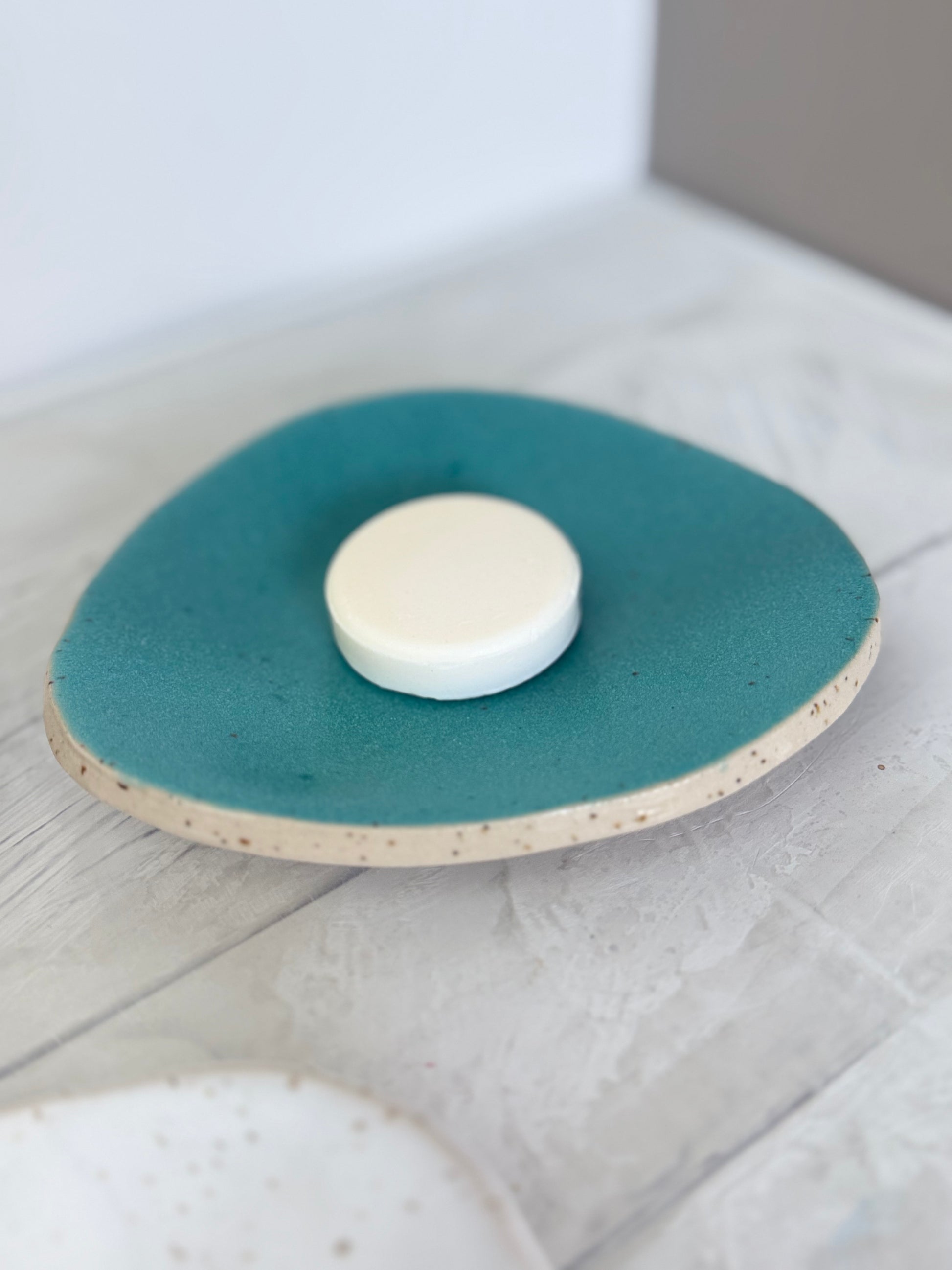 Soap dish turquoise teal is approx 14 x 12 cm - 5.51" x 4.72"